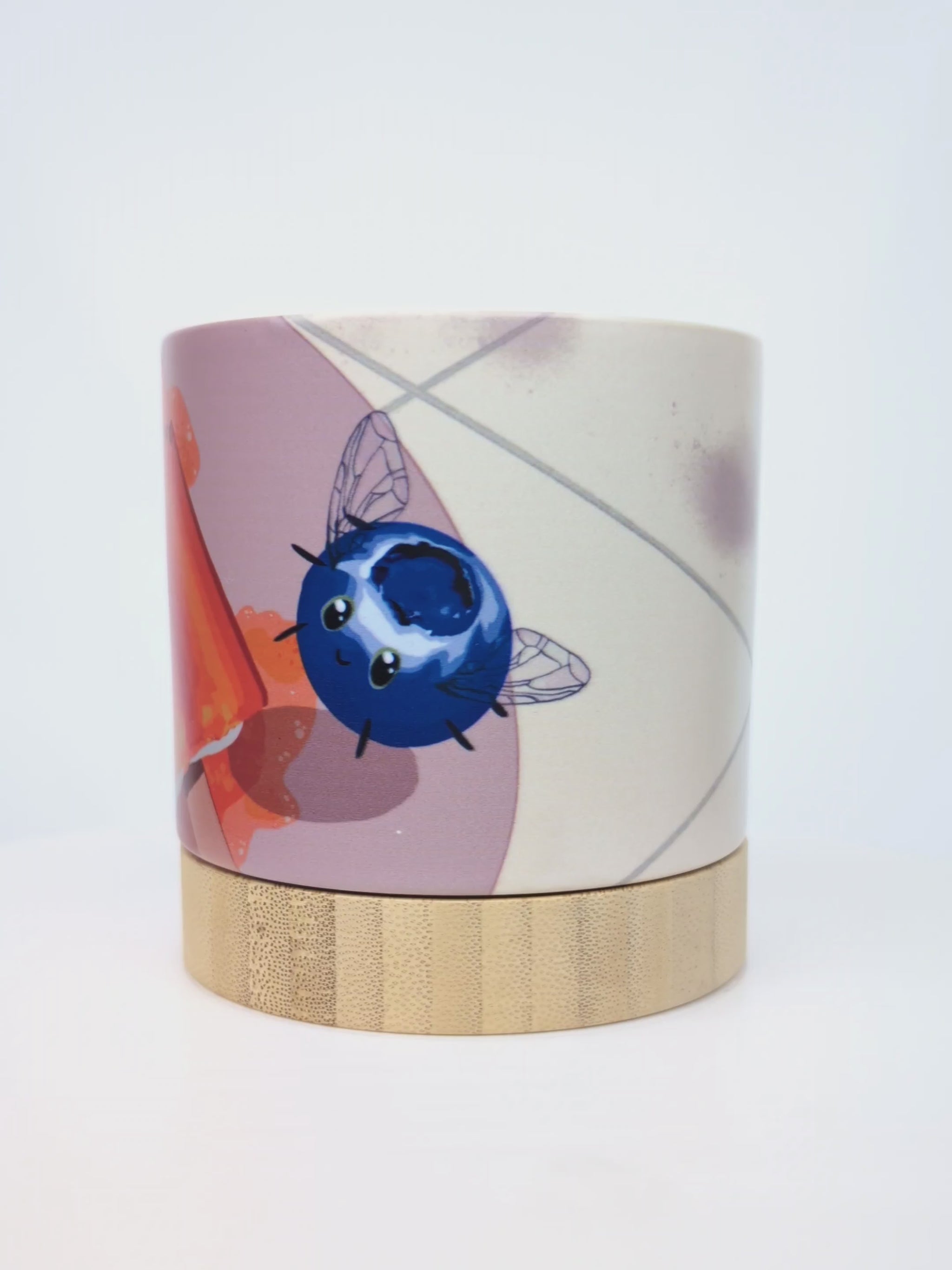 Each ceramic planter pot is custom printed with original artist-designed artwork that wraps seamlessly around the entire pot and finished with a drainage hole. A bamboo saucer is included.