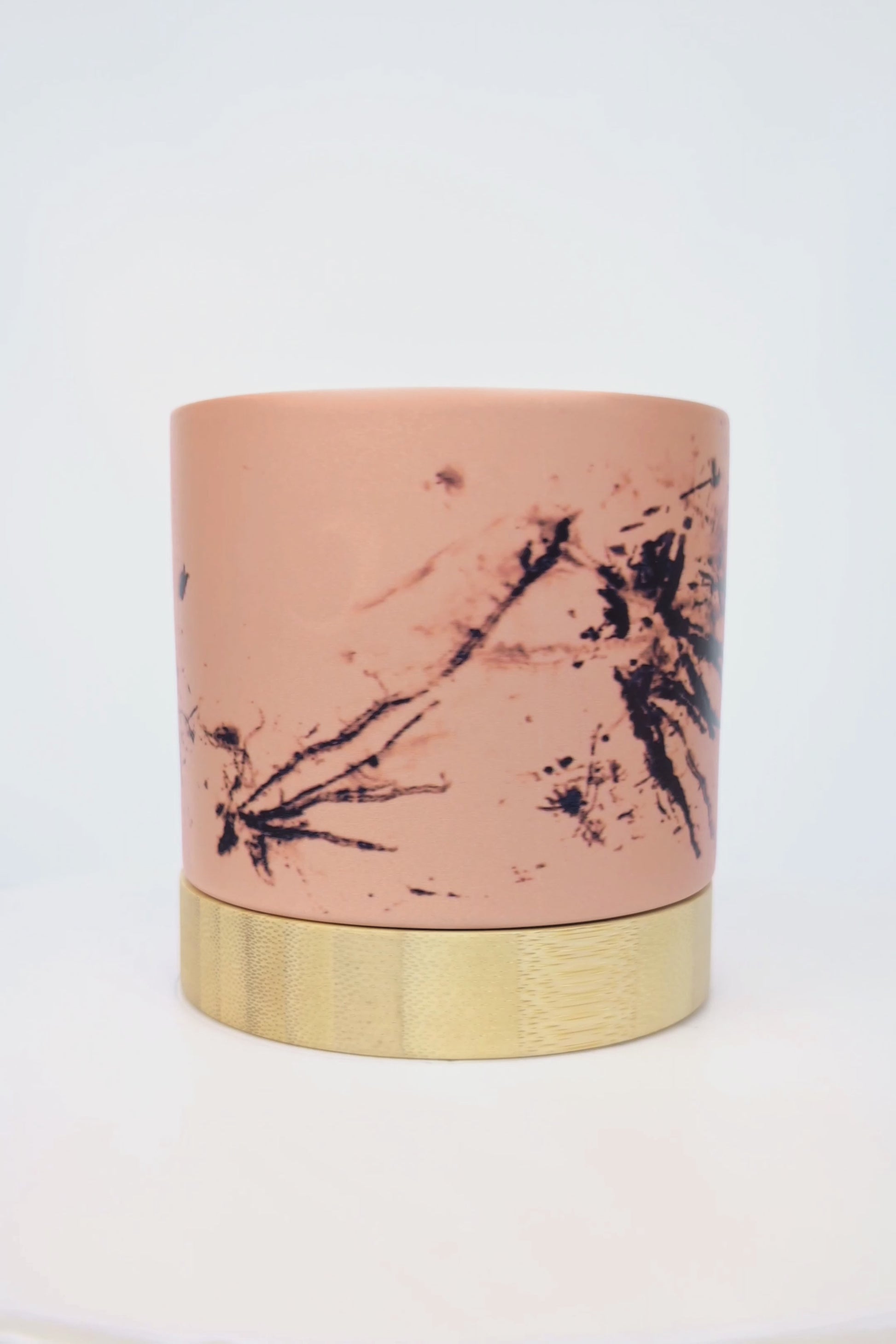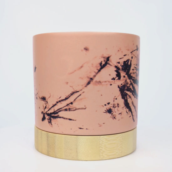 Each ceramic planter pot is custom printed with original artist-designed artwork that wraps seamlessly around the entire pot and finished with a drainage hole. A bamboo saucer is included.