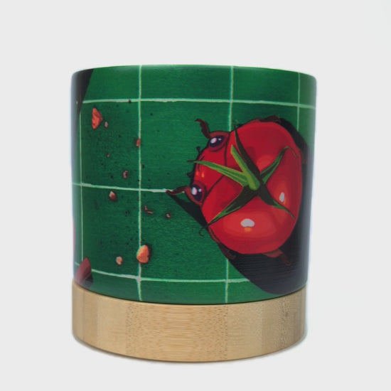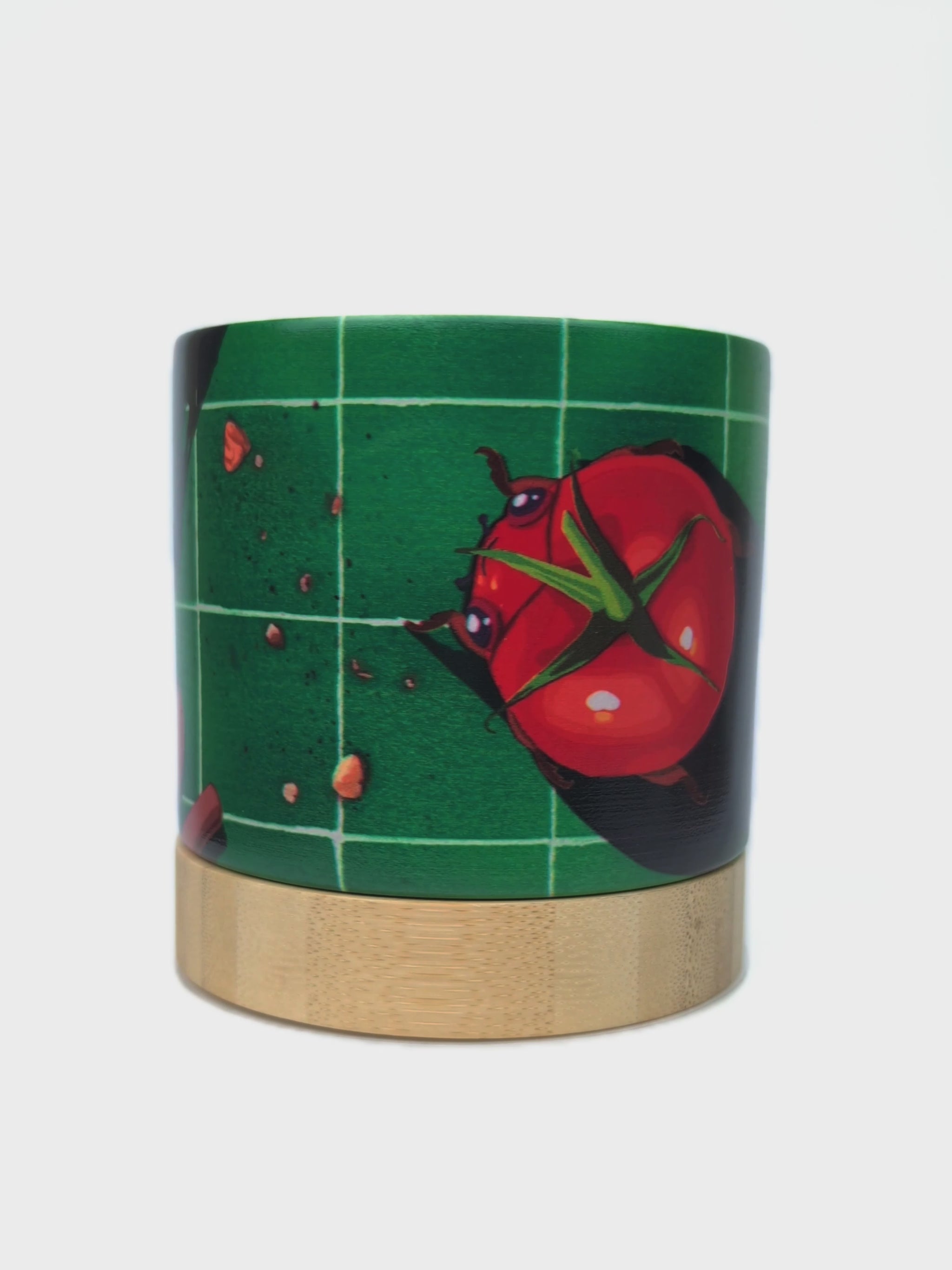 Each ceramic planter pot is custom printed with original artist-designed artwork that wraps seamlessly around the entire pot and finished with a drainage hole. A bamboo saucer is included.